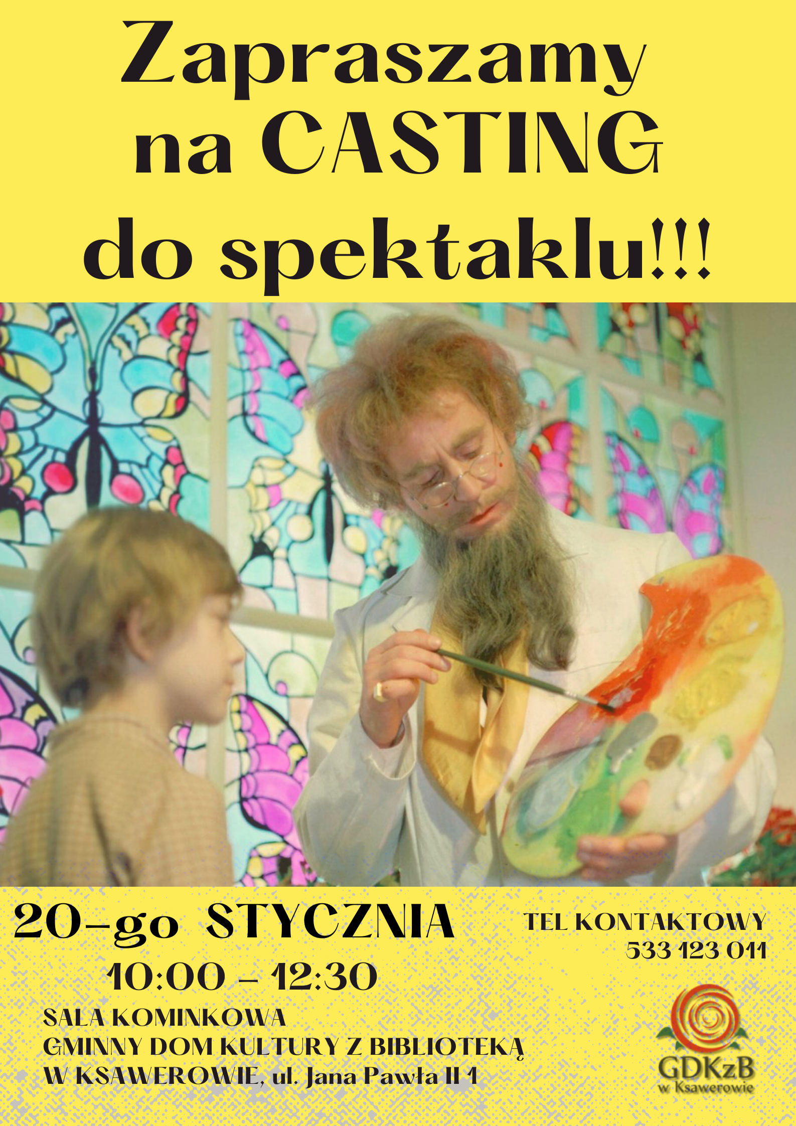 Tego jeszcze w Gminny Dom Kultury z Biblioteką w Ksawerowie nie było!!! Już 20-go stycznia, w sobotę, o godz. 10.oo, odbędzie się, w Sali Kominkowej GDKzB w Ksawerowie CASTING! Szukamy aktorów, do spektaklu na podstawie „Akademii Pana Kleksa”.