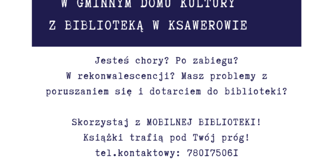 Możesz skorzystać z mobilnej biblioteki, a książki trafią pod Twój próg. Telefon kontaktowy 511 997 821.