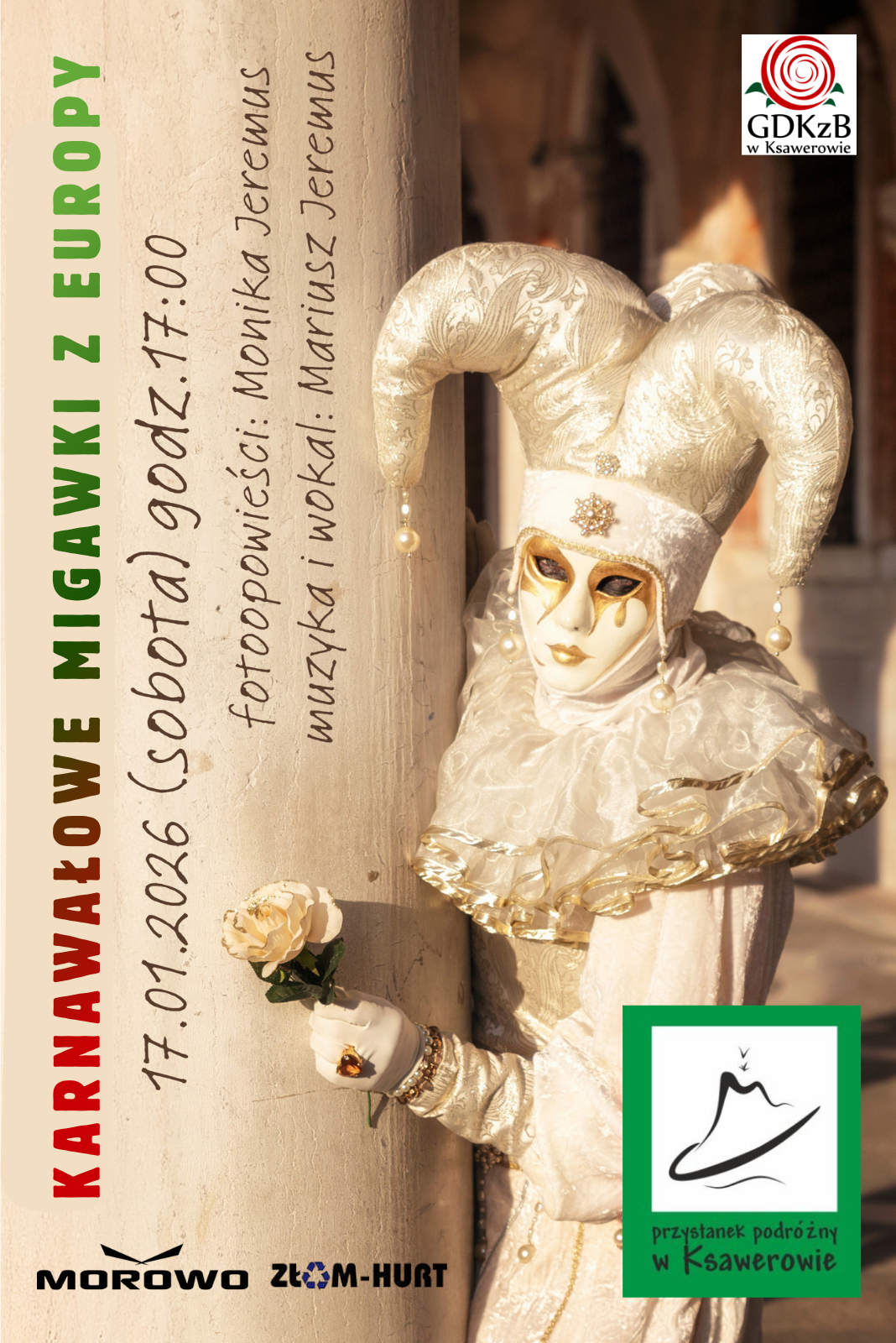 Zapraszamy na wyjątkowe spotkanie z cyklu „Przystanek Podróżny w Ksawerowie”, które tym razem zabierze nas w barwny, karnawałowy świat pełen muzyki, obrazów i opowieści z podróży.