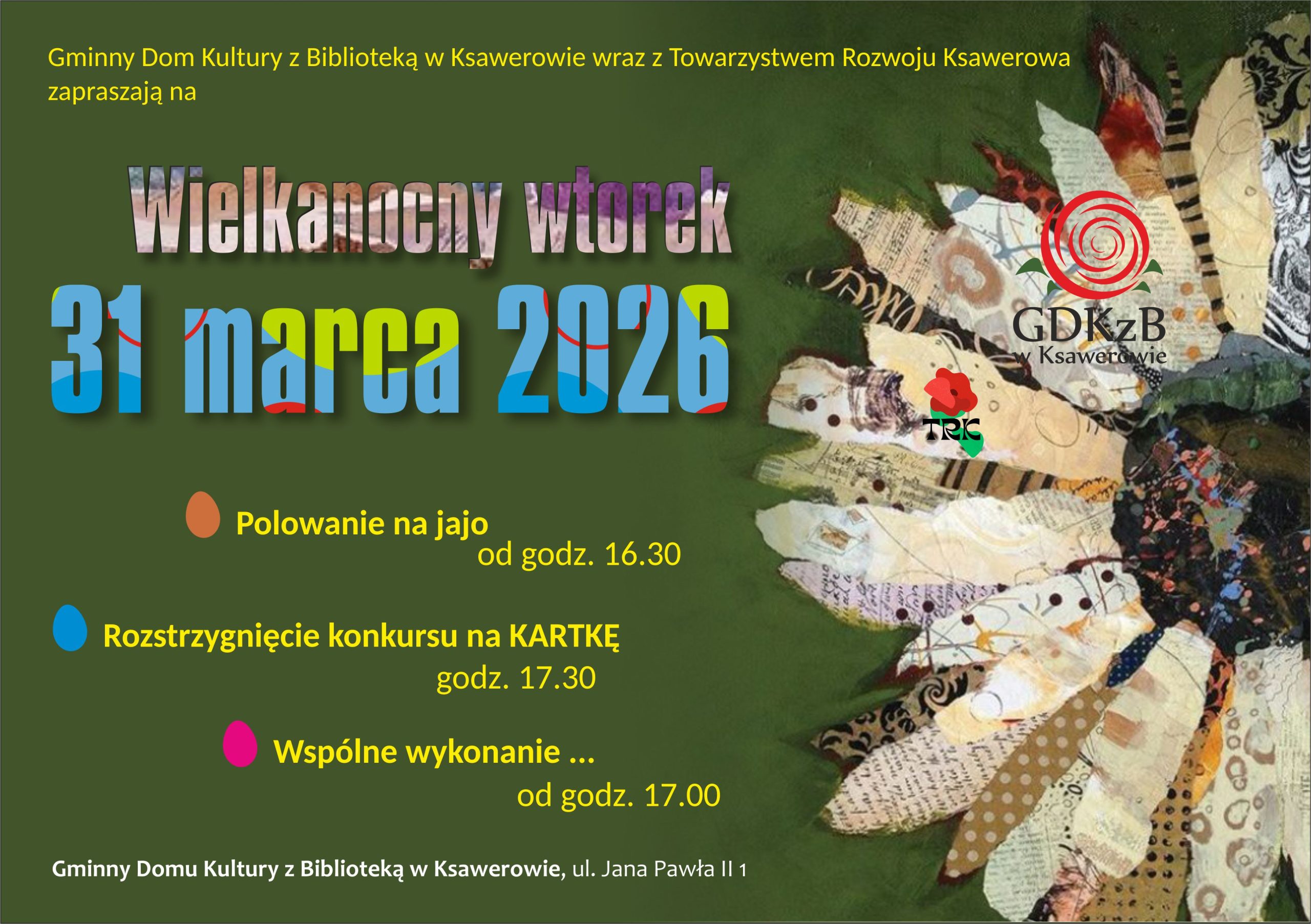 17:30 – Rozstrzygnięcie konkursu na kartkę wielkanocną