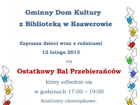 Zaproszenie na Ostatkowy Bal Przebierańców