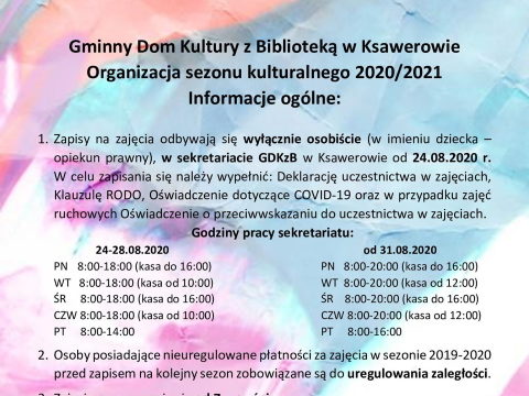 zapowiedzi wydarzeń i aktualne informacje Gminnego Domu Kultury z Biblioteką w Ksawerowie